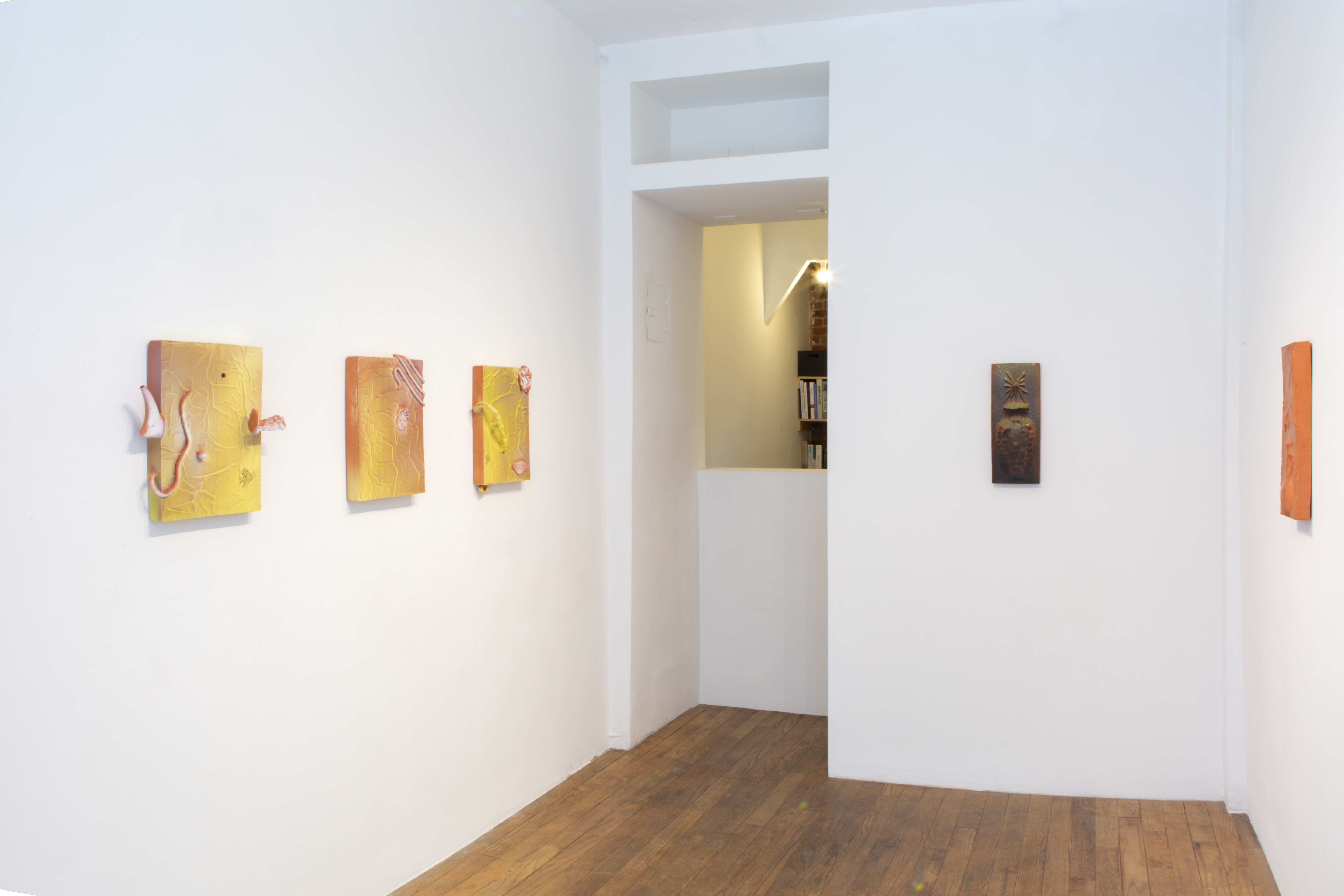 New Collectors is pleased to present, Nightshade, a solo show of Ryan Rennie’s most recent ceramic work. Rennie creates plaster press moulds using bowls, vases, flowers, and handmade shapes that are covered in plastic wrap or tin foil. The moulds are then cast in ceramic and glazed before their second firing. The texture looks like draping fabric, and references marble statues of drape-covered urns, but is more similar to a vacuum-sealed, mass-produced good. Although each piece could be a multiple, he chooses only to make one or two pieces from the same mould.